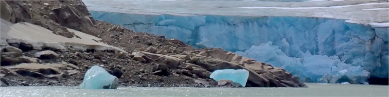 Bottom of Grinnel Glacier shows glacial outwash, debris, and melt water.