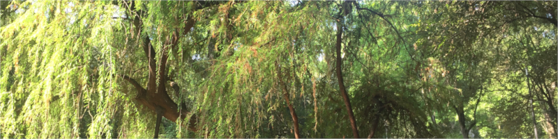 The ahuehuetl tree, Taxodium mucronatum, is a native tree with a grandiose history in the region [5]. During the establishment of the island city state of Tenochtitlan, it is said that the indigenous people planted the ahuehuetl tree to anchor clods of earth called ‘chinampas’ to the shallow Lake Texcoco’s floor. Navigating extensive networks of water between mounds, the Mexica people would travel by boat and create the gardens which fed the elaborate city. These trees are related to and resemble the Bald Cypress trees, Taxodium spp., found in the swampy regions of the southern United States of America. The ahuehuetl tree is protected by the Mexican government, and is found abundantly across the Mexico City’s landscape. Due to their protection, some specimens are many hundreds of years old.